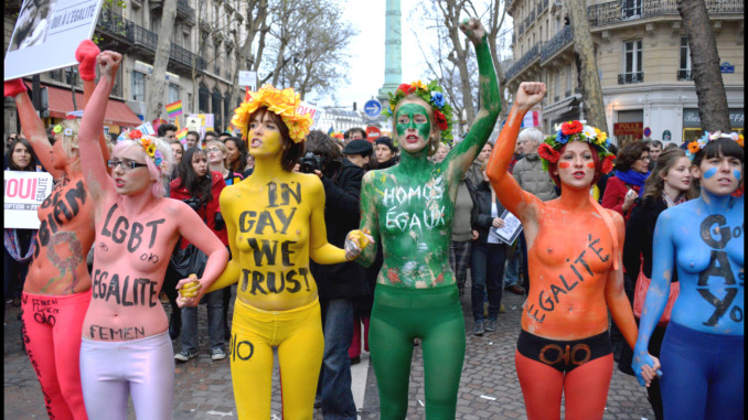 BILDER: foton från FEMEN över hela världen. Mer info om dem hittar ni på FEMENs hemsidor och på Facebook exempelvis http://supportfemen.com/ och https://www.facebook.com/Femen.Sverige/